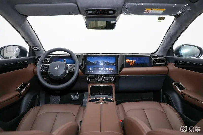 进入车内,零跑C01增程延续纯电版车型的设计理念,依然采用了非常具有科技氛围的三屏设计。此外,新车基本取消了实体按键,所有功能都集中大屏触摸控制,更简约现。同时车内可触碰的的地方大部分都是采用大面积的皮革包裹,看上去极具档次感。