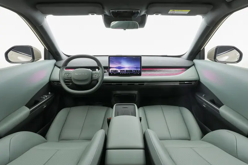 内饰方面,新车提供有智灰、放青松和好有米三种内饰配色,配备大尺寸悬浮式中控屏、双辐式方向盘、窄条形液晶仪表以及怀挡设计。前排中央扶手设有三个隐藏式杯托,并且车内还配备了全景天幕、50W手机无线快充和128色氛围灯。