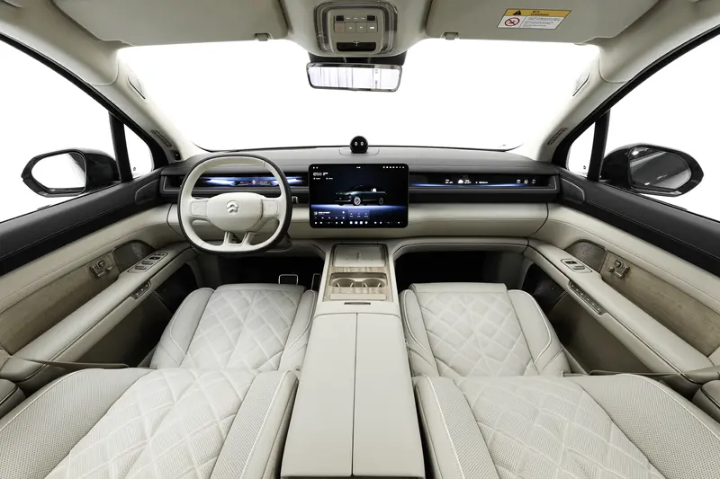 配备了38英寸AR平视显示系统以及ET9同款的15.6英寸中控横屏,并支持杜比视界。搭载全球首颗车规5nm高阶智驾芯片神玑NX9031、整车全域操作系统「SkyOS·天枢」。此外,新车还搭载NOMl Mate 3.0,拥有六个独立音区,每个座位都能唤醒NOMl。配备全舱专属智能NOMllntelligence,深度植入系统层的大模型能力,能够根据全舱互通的数据和个人上下文,通过情感引擎生成动态情境和记忆,实时自主分析、决策和同意调用全舱的原子能力,提供专属交互和个性化陪伴,高效完成复杂的任务。