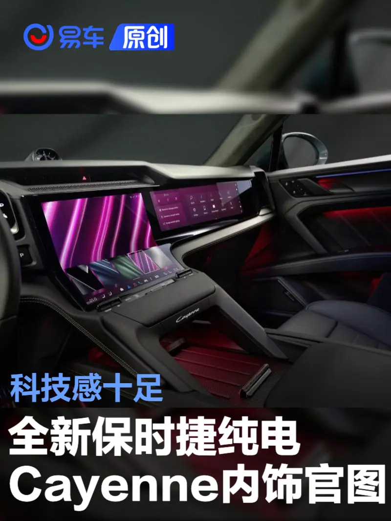 易车讯 日前,保时捷正式发布了纯电Cayenne内饰官图。新车搭载了12.25英寸弧形曲面中控屏、14.25英寸OLED数字仪表盘以及14.9英寸副驾驶屏幕,科技感十足。