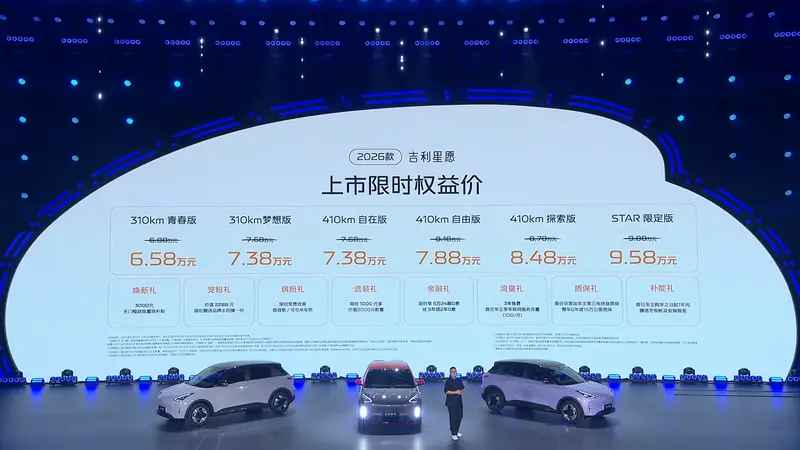 易车讯 10月10日,2026款吉利星愿迎来正式上市,新车共推出6款车型,售价区间6.88-9.88万元,上市限时权益价6.58-9.58万元。2026款吉利星愿定位为纯电小型车,作为年款车型,新车针对配置方面进行升级。