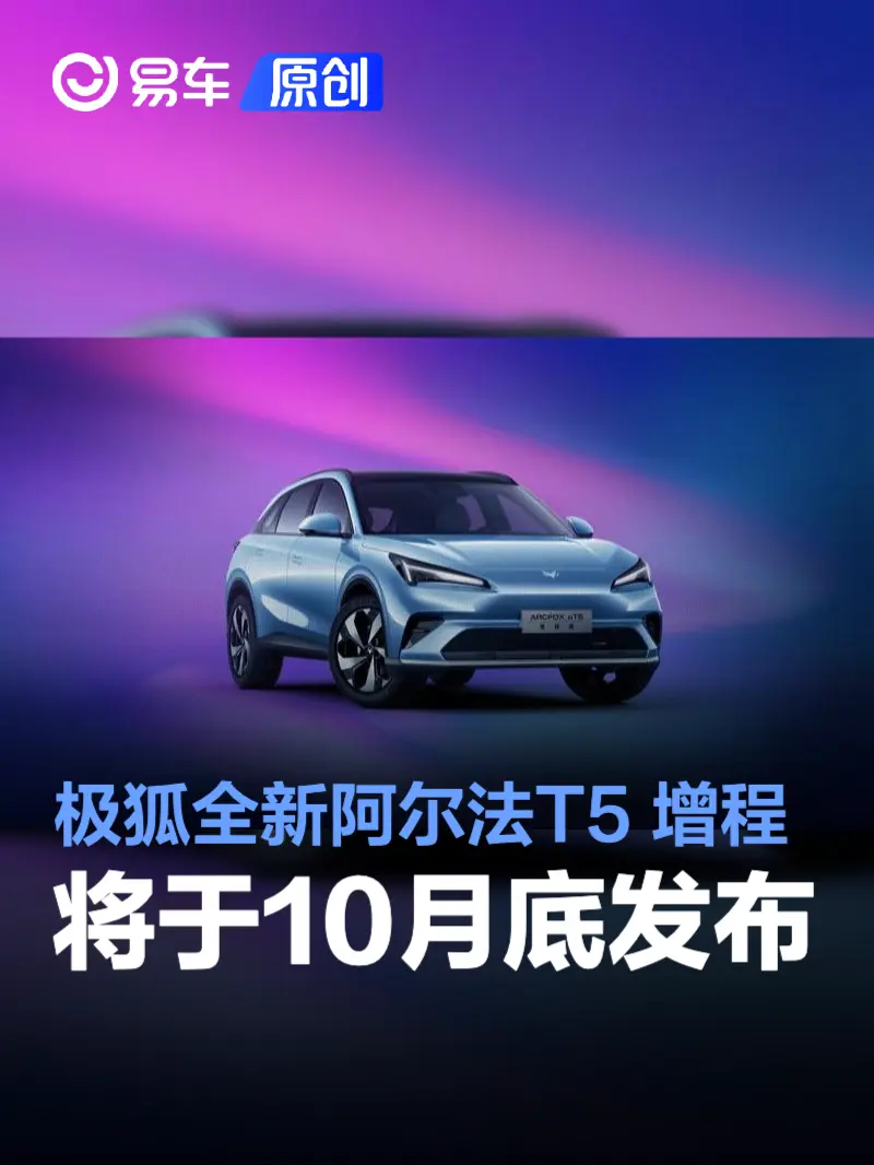 易车讯 10月10日,极狐官方宣布全新阿尔法T5增程版将于10月底迎来正式发布。新车是极狐推出的首款增程车型,将搭载北汽神擎增程动力。