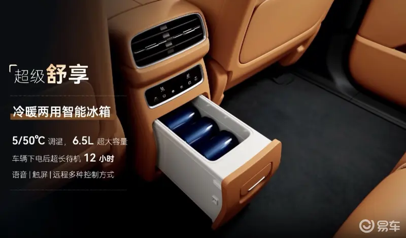 其余配置方面,新车还搭载2.5K的15.6英寸智能后排娱乐屏,可以控制二排座椅通风、加热;控制后排娱乐屏的展开和折叠 ;控制冰箱的加热和制冷,同时具备双Type-C充电功能。其余配置方面,新车还搭载64色氛围灯、18扬声器、冷暖两用智能冰箱、50W无线充电、哨兵模式等。