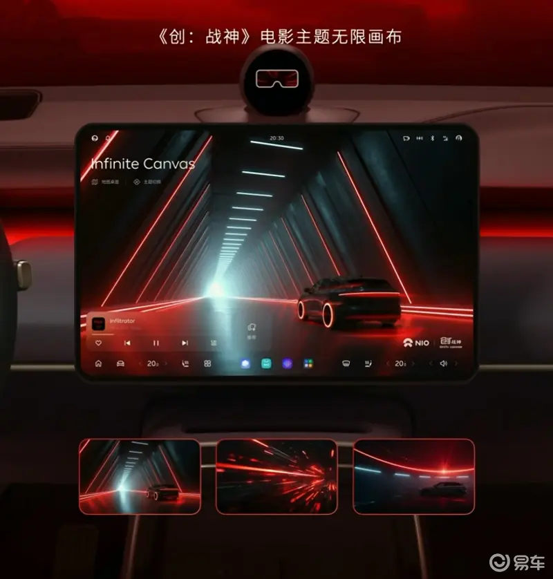 内饰方面,新车采用赛博座驾风格,中控台标配电驭紫Nappa & Haptex双拼内饰,并加入了红色氛围灯以及《创:战神》电影主题无限画布。此外,新车依旧配备15.6英寸AMOLED超窄边框横屏、18.8英寸W-HUD及流媒体后视镜,并搭载蔚来第三代智能系统NT.Cedar S 雪松,标配全球首颗车规5nm高阶智驾芯片——神玑 NX9031、整车全域操作系统SkyOS · 天枢,以及具备中央大脑的可进化智能底盘,带来全天候全向感知能力。