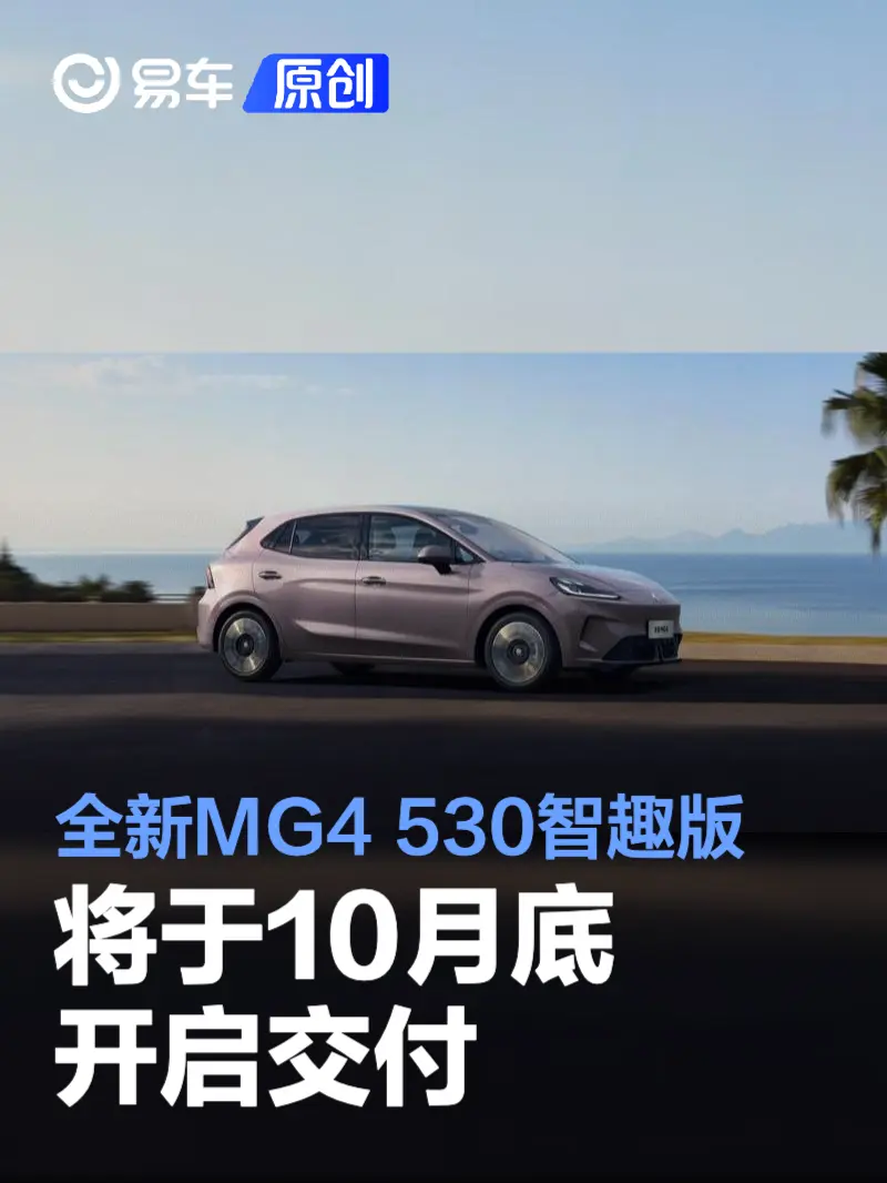 易车讯 我们从官方获悉,全新MG4 530智趣版将于10月底正式开启交付,新车限时补贴价9.38万元,拥有530公里续航。