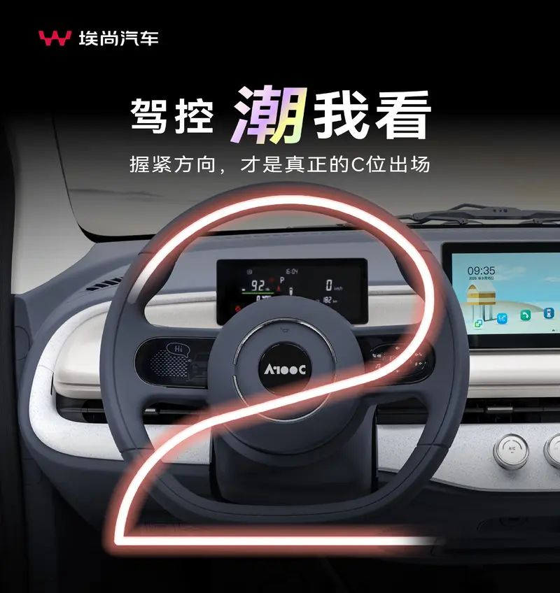 动力方面,A100C搭载一台最大功率35千瓦,最大扭矩83牛·米的电机,配备17.65kWh磷酸铁锂电池,CLTC续航里程达到220公里。