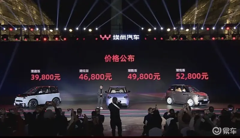 易车讯 10月21日,柳州五菱新能源全新新能源汽车品牌埃尚汽车首款车型埃尚A100C正式上市,包含四款车型,售价区间3.98-5.28万元。官方表示,新车上市即交付。