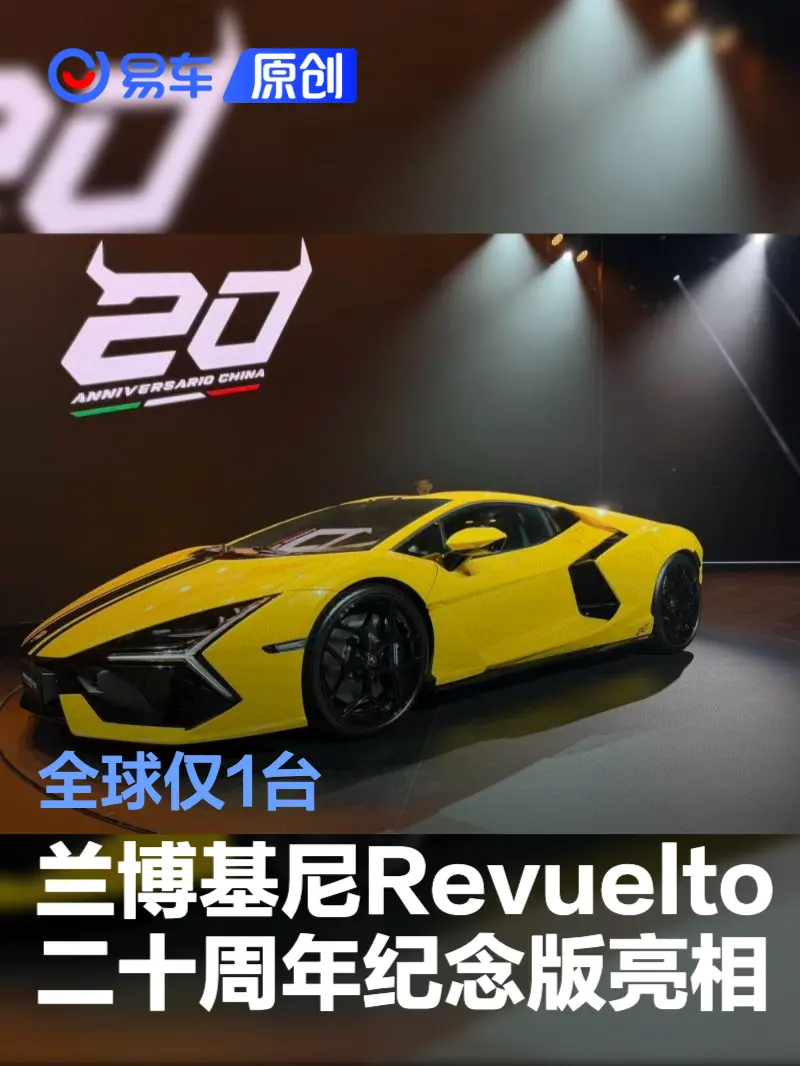 易车讯 10月21日,为庆祝进入中国内地市场二十周年,兰博基尼汽车于上海呈献专属盛典。在活动现场,Revuelto Ad Personam二十周年纪念版车型正式亮相。据悉,这款纪念版车型是专门为兰博基尼入华二十周年而特别打造,全球仅1台。