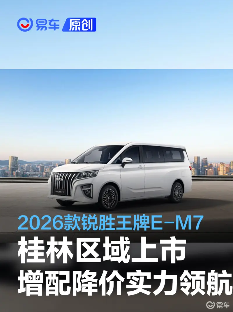 易车讯 2025年10月25日,2026款锐胜王牌E-M7桂林区域上市品鉴会于北京汽车制造厂桂林德源店成功举行。新款提供创业版、营运版等多个车型配置,售价区间9.98-18.48万元,和原车型相比配置升级,官方售价却更低,加量不加价!