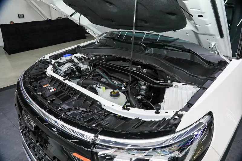内饰方面同样延续家族化设计,中控台采用12.3英寸全液晶仪表+27英寸4K中控连屏设计,内置SYNC+3.0智行互联系统。其余配置方面,新车还搭载手机双无线充电面板、方向盘加热、主副驾驶座椅通风/加热、二排座椅加热等。新车采用2+3的5座布局,后备厢容积1505L,后排座椅放倒后容积可可扩充至2487L。