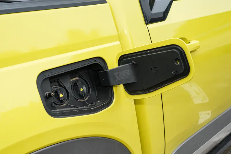 日产Frontier Pro PHEV整体延续了Frontier Pro的设计语言,只是在前格栅上方加入了封闭元素以凸显新能源身份。此外,PHEV车型还在车头上方加入了如同时空胶囊般的横贯式日行灯,凸显了新车的时尚感。