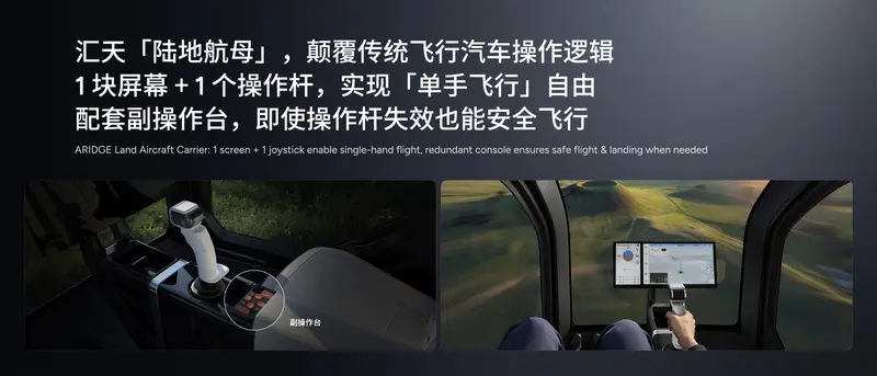 小鹏汇天陆地航母将颠覆传统飞行汽车操作逻辑,1块屏幕+1个操作杆,实现单手飞行自由。并将推出行业首个飞行汽车专属飞行执照,专业教练1对1培训。