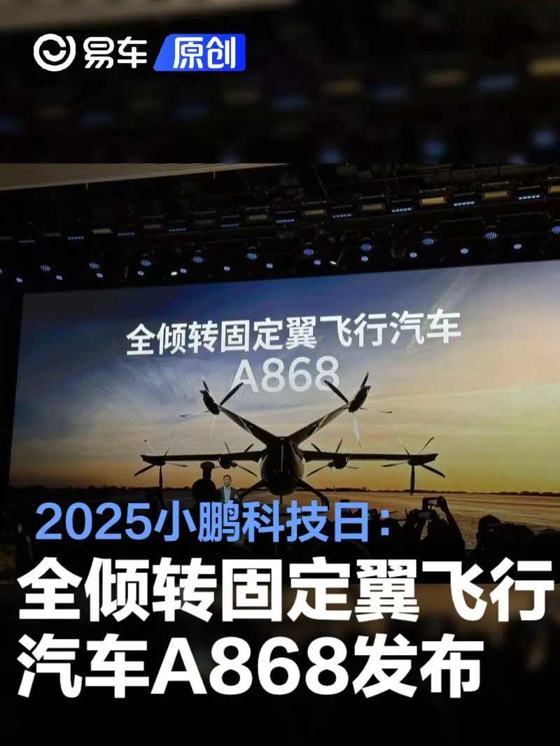 易车讯 11月5日,在2025 AI DAY小鹏科技日上,小鹏汽车发布全倾转固定翼飞行汽车A868,目前已经进入试飞阶段。