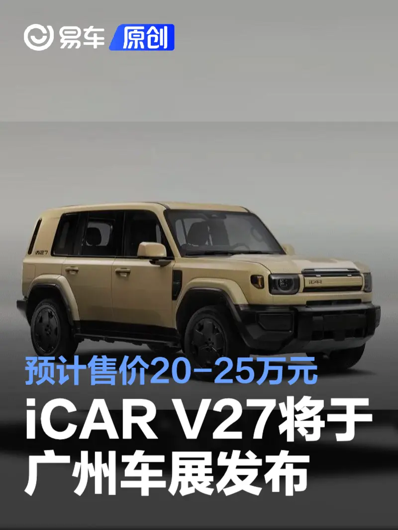 易车讯 我们从相关渠道获悉,iCAR V27将于广州车展迎来正式发布。据悉,新车将搭载增程系统,并于四季度迎来上市,预计售价20-25万元。