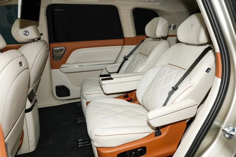 侧面来看,新车拥有修长流畅的车身线条,采用22寸超大电镀带悬浮徽标轮毂。车身尺寸方面,新车长宽高为5230/2025/1817(mm),轴距为3120mm,定位一款全尺寸SUV。