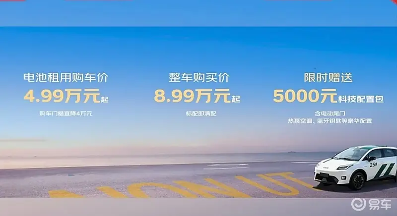 同时官方宣布,推出4000元购车补贴,以及见面699元/年服务费等购车权益。同时租电价4.99万元起,可享2000元购车补贴以及2500元京东E卡,租电用户12月8日前下定可享受399元/月电池月租优惠(原499元/月)。