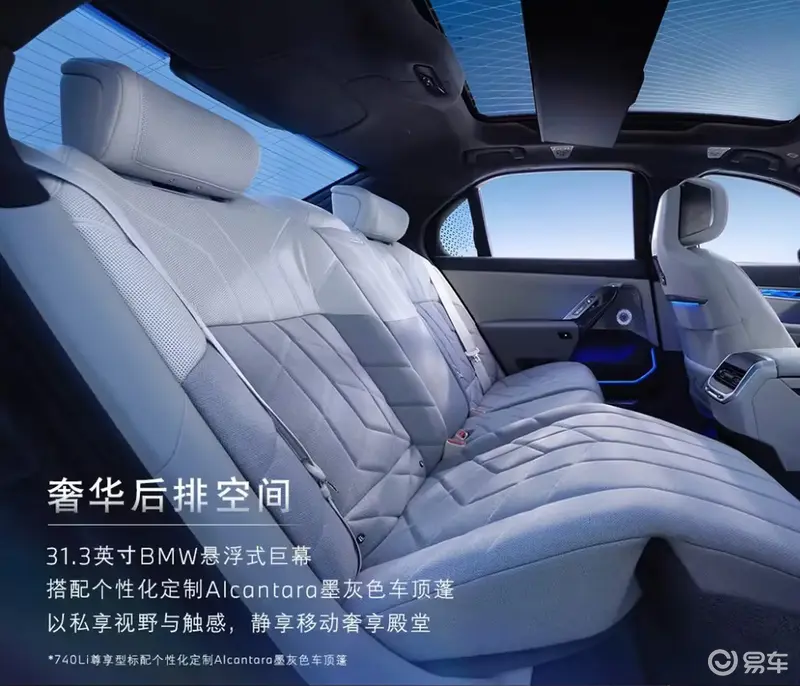 内饰方面,车内延续三辐式平底多功能方向盘与12.3英寸全液晶仪表+14.9英寸中控屏的曲面双联屏设计,拨杆式电子换挡机构保留了宝马的操作特色。材质方面,尊享型车型标配原11500元选装的Alcantara墨灰色车顶篷,并提供免费配色可选。