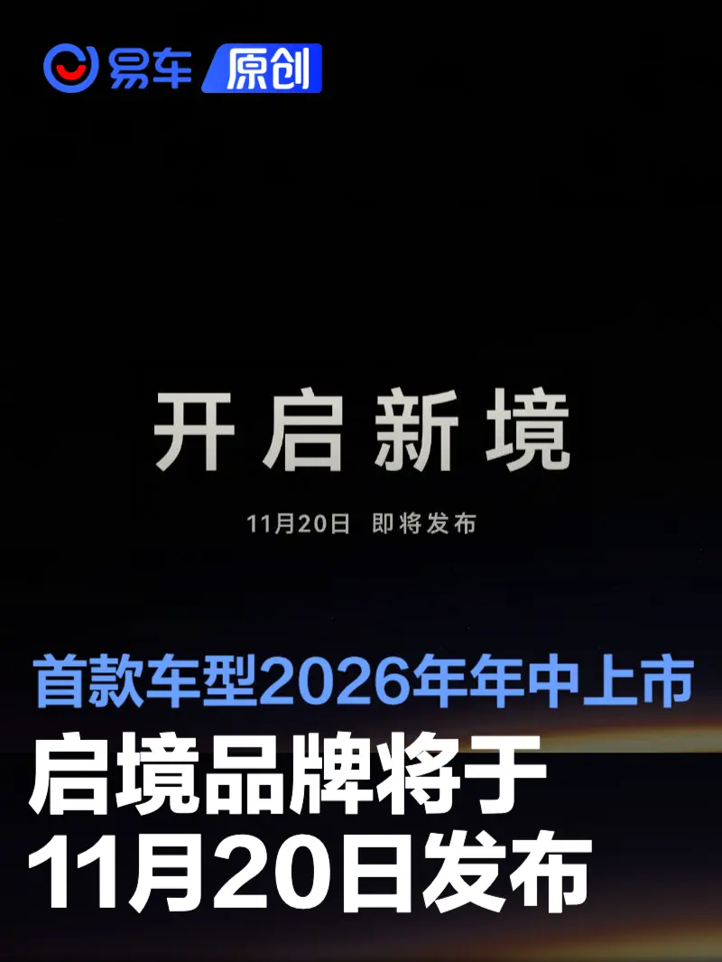 易车讯 11月14日,启境汽车在官微宣布启境品牌将于11月20日举办的华为乾崑生态大会上正式发布。启境是广汽集团与华为联合打造的全新品牌,目前启境首款车型已顺利完成极端环境测试、设计定型等关键研发环节,计划于2026年年中上市。