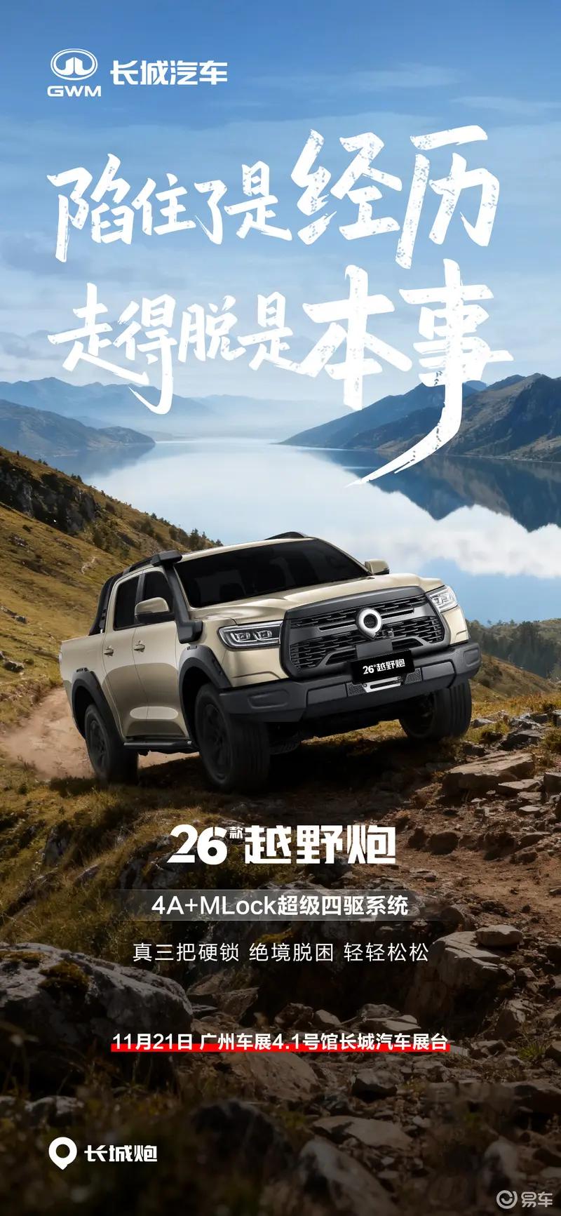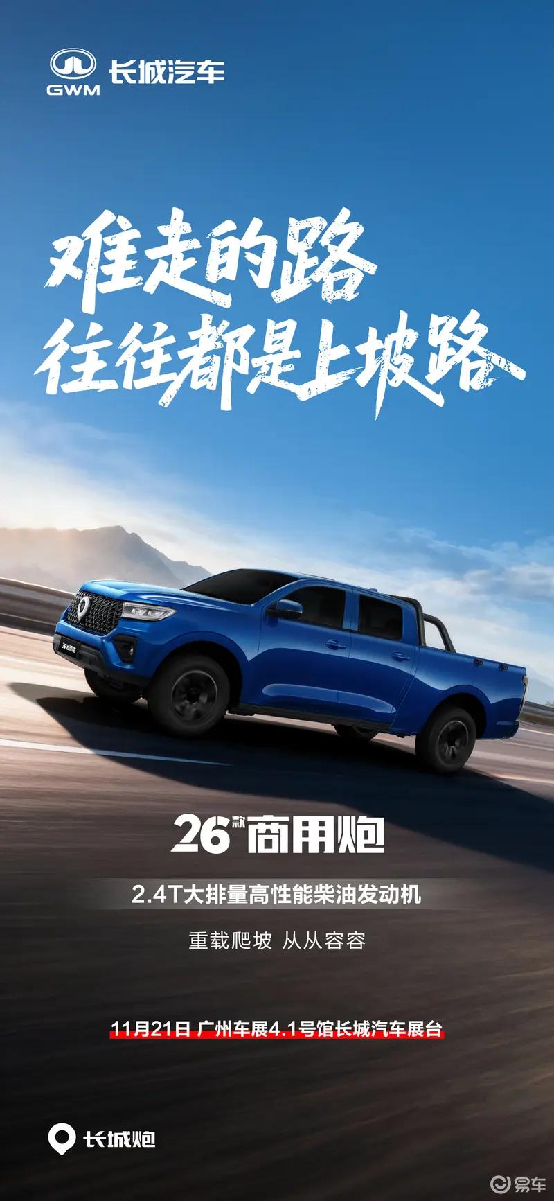 易车讯 11月17日,长城炮品牌CEO张昊保在社交媒体上公布了2026款乘用炮内饰官图,并宣布该车将于11月21日开幕的广州车展上正式上市。结合此前报道,2026款商用炮、2026款越野炮也将在本届广州车展上公布售价。