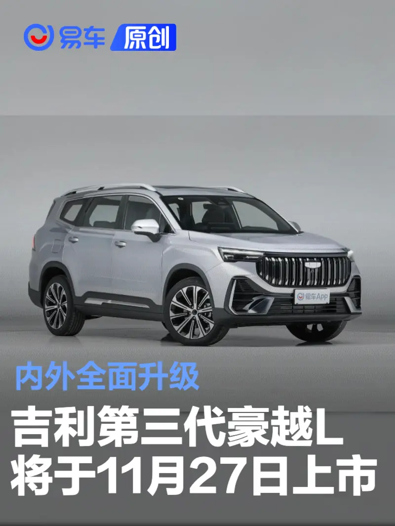 易车讯 我们从吉利汽车官方获悉,第三代豪越L将于11月27日正式上市。新车采用最新的家族设计语言,并在配置和空间上进行了全面升级革新。动力方面在保留2.0T发动机的基础上新增1.5T版本。