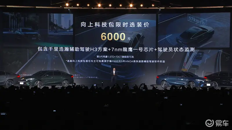 与此同时,吉利为第5代帝豪推出搭载千里浩瀚辅助驾驶H3方案,向上科技包限时选装价6000元。
