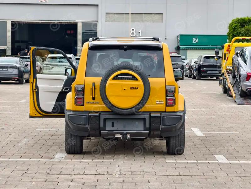尾部方面,新车采用竖向排列尾灯组,此外还有侧开尾门、外挂式备胎和粗壮的后保险杠,都是硬派SUV的典型设计特征。据悉,新车长度接近5米,动力方面采用1.5T增程系统,并提供后驱和四驱版本。