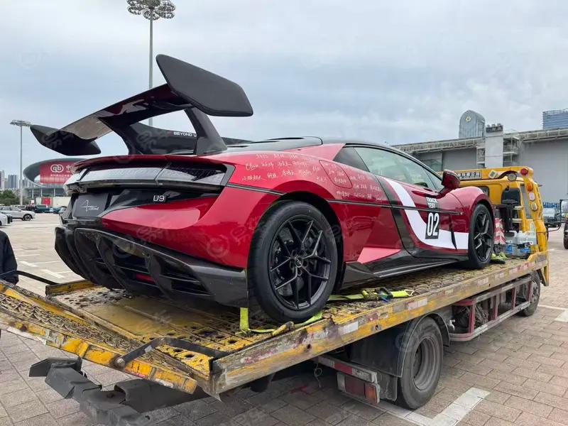 外观方面,仰望U9 Xtreme采用了“时空之门”家族式设计语言,整车外观既保留了经典超跑的设计元素,又融入了未来电动超跑的整体科技感,封闭式前脸设计,非常夸张“C”字形的星空大灯,设计灵感源自外太空,点亮后的效果非常出彩,具有不错的科技感,内部布满了像獠牙一样的小分叉灯组,而且它的前轮拱非常的突出。