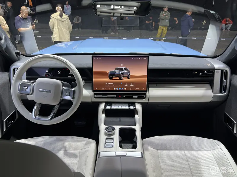 进入车内,新车采用了T形中控台布局,悬浮式的中控屏为硬派的中控台增添了一份科技感。此外,下方还配有实体按键以及驾驶模式切换旋钮。