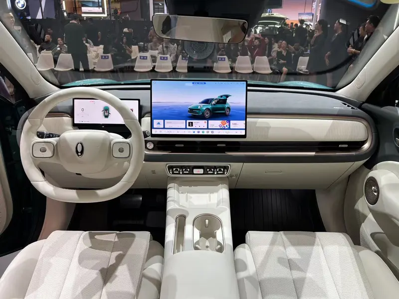 内饰方面,欧拉5采用了时下流行的简约化设计风格,新车中控台和车门内饰区域采用了织物网格材质包裹,满满的环保氛围。此外,新车中控台搭载大尺寸悬浮中控屏,中央通道区域采用了镂空设计,并配备了怀挡式换挡机构和手机无线充电。
