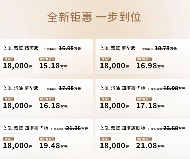 易车讯 在11月21日开幕的2025广州车展上,一汽丰田全新RAV4荣放正式公布售价并全面开启预订,共推出6款车型,官方指导价区间16.98-22.88万元;限时焕新价区间15.18-21.08万元。