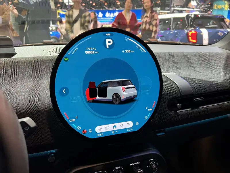 内饰方面,首先映入眼帘的是方向盘上一抹经典的Paul Smith彩色条纹织带和品牌铭牌。新车仪表台包裹了专属暗调条纹织物,此外还搭载了装饰有黑蓝双色织物和设计师签名的龙葵蓝Vescin运动座椅。MINI行业首创OLED 圆屏在个性化模式下,也新增了三种不同的Paul Smith专属背景。