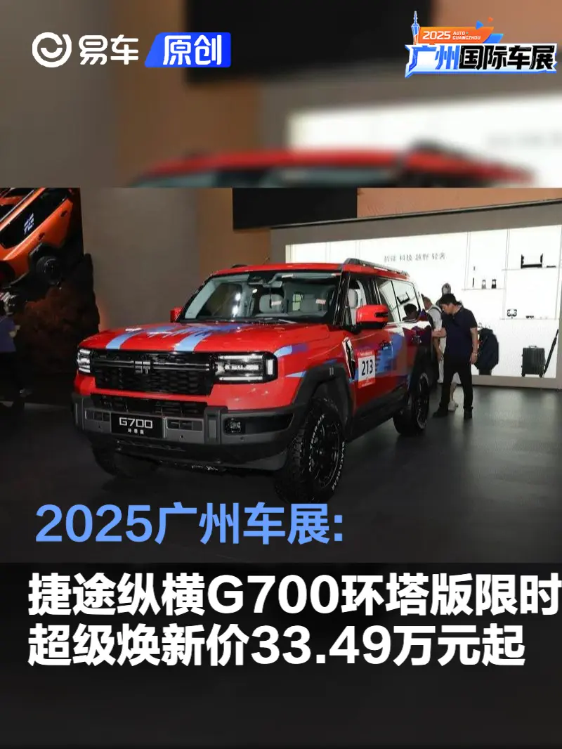 易车讯 在今日开幕的广州车展上,捷途纵横G700环塔版迎来正式上市,新车共推出2款车型,售价区间35.99-37.99万元,限时超级焕新价33.49-35.49万元。新车基于基于G700升级而来,进行了越野化的专属调校。