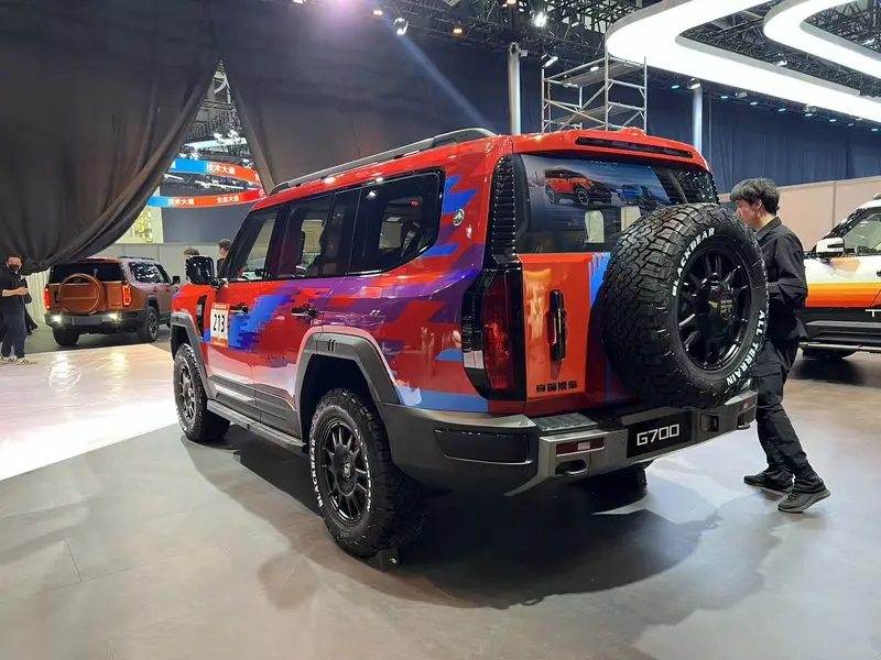 尾部方面,新车搭载了外挂的全尺寸备胎,尾灯组为硬派SUV常用的竖列设计,内部灯组点亮后拥有很高的辨识度。捷途纵横G700的长宽高尺寸为5198×2050×1956mm,轴距为2870mm。