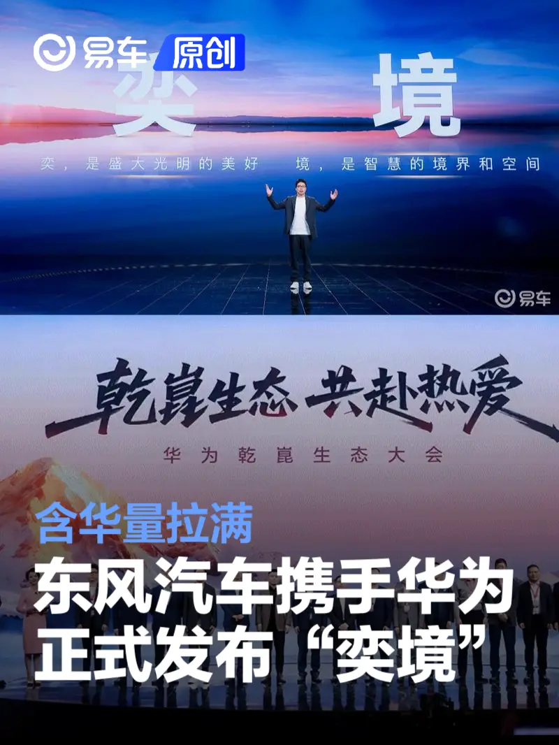 易车讯 在11月20日举办的华为乾崑生态大会上,东风汽车与华为乾崑联合打造的新能源汽车品牌“奕境”正式发布。这是首个汽车央企与华为深度合作孕育的全新汽车品牌,双方首度开创行业全新的合作模式,强强联合集中双方优势资源,瞄准高品质家庭用车市场,打造全新“奕境”品牌。