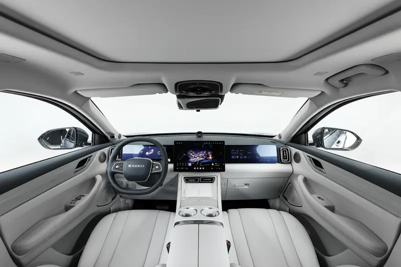 星途ET5的内饰采用“优雅流动永恒”美学设计语言,将东方审美与现代智慧科技相融合。新车最引人注目的无疑是贯穿整个仪表台的三联屏设计,由10.25英寸液晶仪表、15.6英寸中控大屏及12.3英寸副驾娱乐屏组成。车机系统深度融合了科大讯飞与DeepSeek等前沿AI大模型技术,构建了端到端的AI语音交互系统,能够实现理解情感、主动关怀的“出行搭子”和“AI用车助手”。此外,由21个扬声器组成的“伯牙之音”音响系统,支持7.1.4 AI全景声,移动KTV无麦嗨唱。