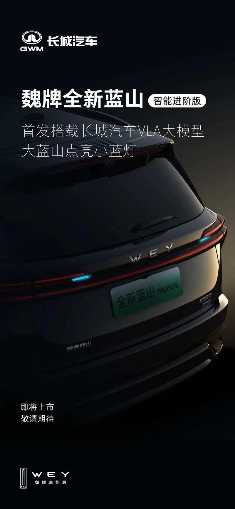 易车讯 12月1日,魏牌官方表示全新蓝山智能进阶版将于近期上市,将首发搭载长城汽车VLA大模型,并配备智驾“小蓝灯”。