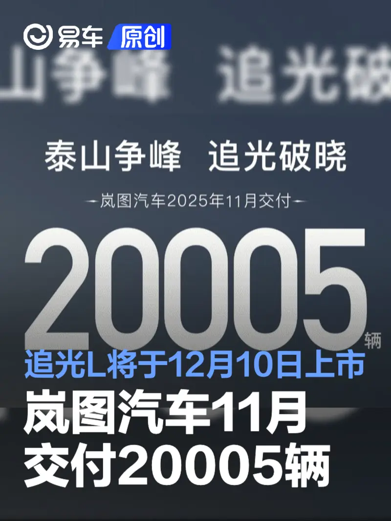 易车讯 12月1日,岚图汽车公布最新交付数据。2025年11月,岚图汽车共交付20005辆,再创历史。