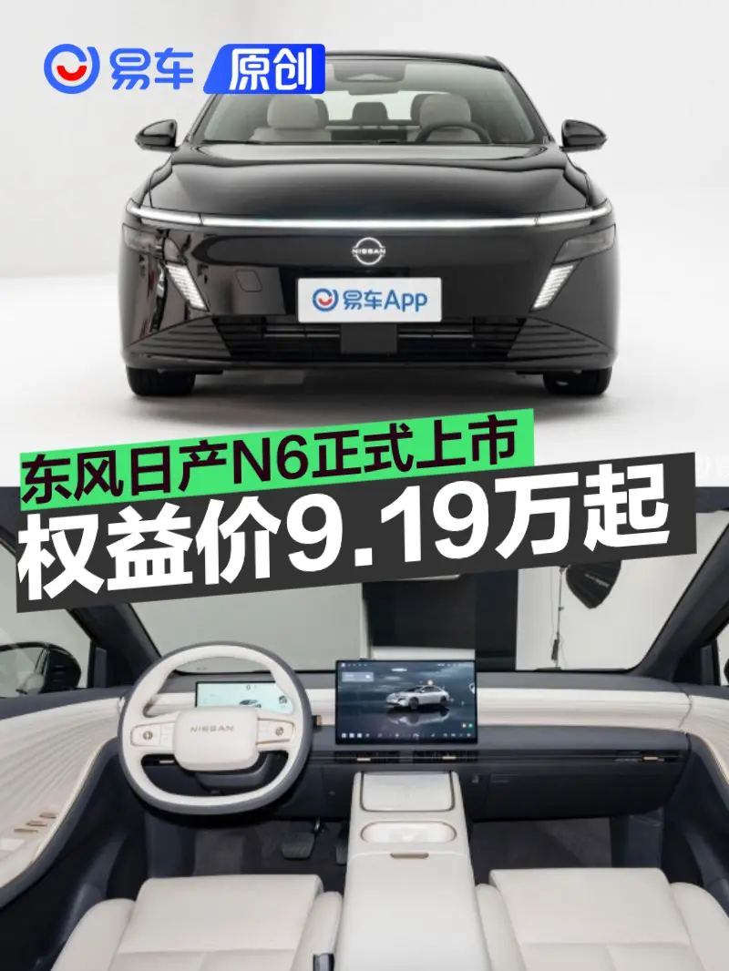 易车讯 12月1日,东风日产N6正式上市,售价9.99-12.99万元,上市限时权益价9.19-12.19万元。新车为天演架构下的首款插混轿车,定位入门中型车,外观采用V-motion家族设计,标配同级最大21.1kWh电池,百公里亏电油耗低至2.79L。