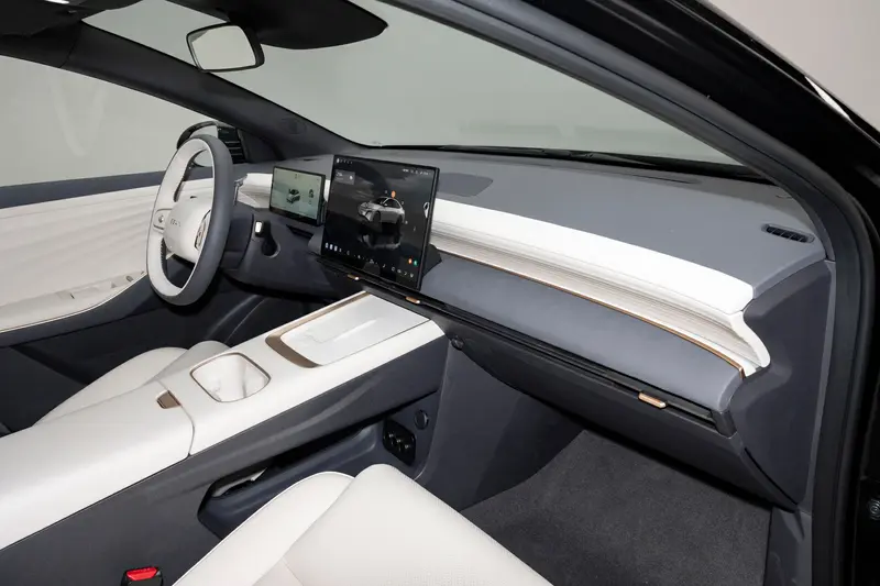 内饰方面,新车内饰采用360度环抱式样座舱,配备悬浮式中控屏和液晶仪表,256色光瀑式氛围灯,还提供手机支架扩展口等。新车提供深浅两种配色方案,并应用了怀挡式换挡机构,浅色内饰的方向盘为双色皮质材料包覆。