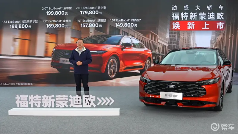 易车讯 12月4日,长安福特新蒙迪欧正式上市,包含6款车型,售价区间14.98-19.98万元。新车在设计层面采用最新家族语言,标配高通骁龙8155车机芯片,全球首发新一代 SYNC+智行互联系统。动力方面提供1.5T、2.0T以及1.5T混动三种供选择。
