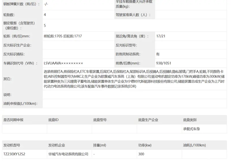 动力方面,新车提供单电机与双电机动力形式,其中单电机最大功率300kW,双电机的前后电机功率分别为200kW和300kW,电池方面则匹配上汽时代与宁德时代提供的三元锂电池组。