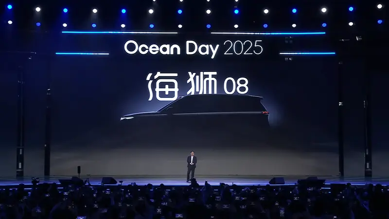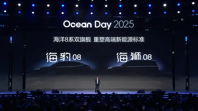 易车讯 12月15日,在2025比亚迪海洋四周年Ocean Day用户盛典上,比亚迪正式发布了海豹08和海狮08预告图。官方表示,两款新车将于2026年一季度亮相。