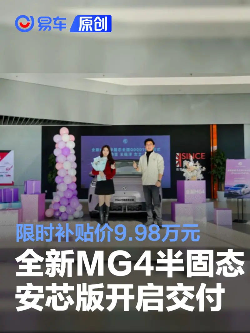 易车讯 12月18日,全球首款且行业唯一量产装车的半固态电池车型全新MG4半固态安芯版正式开启交付,新车限时补贴价9.98万元。