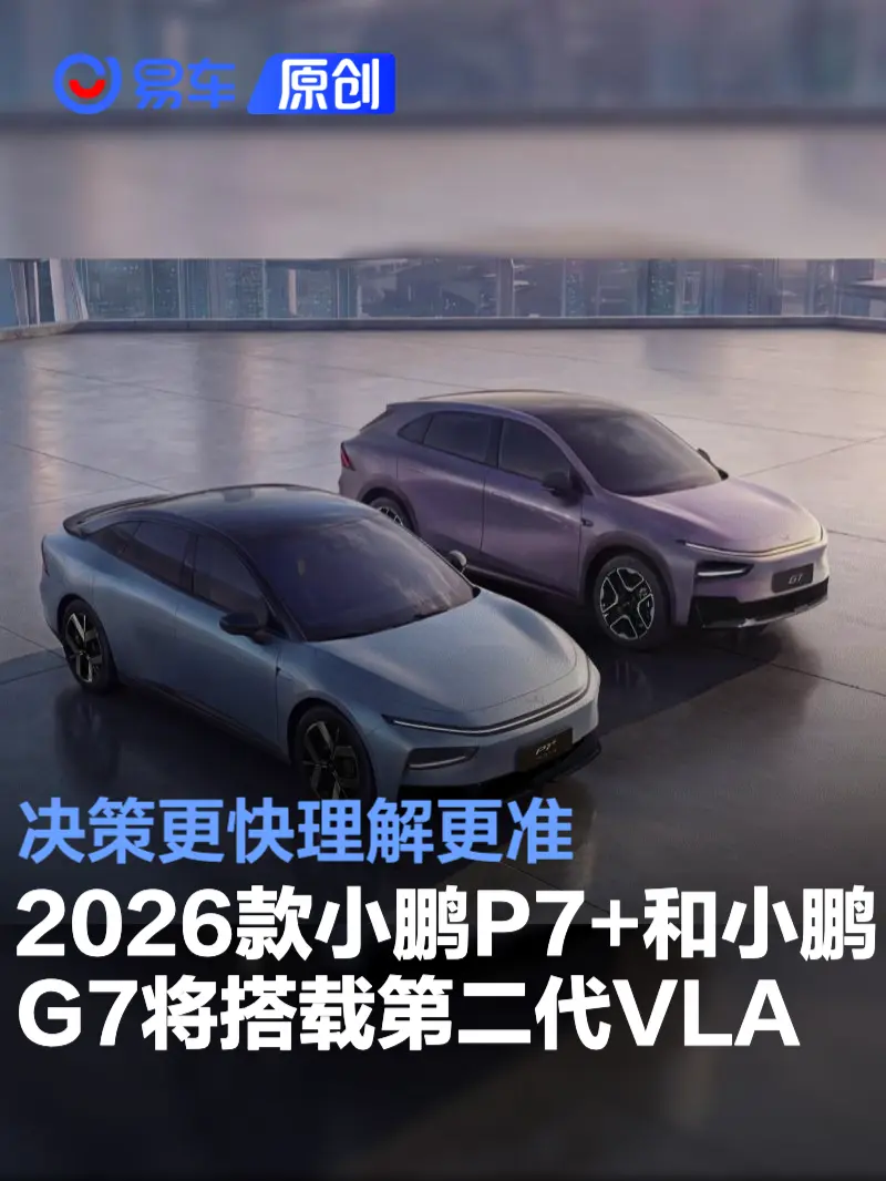易车讯 今日,小鹏汽车官宣:2026款小鹏P7+和小鹏G7将搭载第二代VLA。搭载图灵AI芯片,拥有2250TOPS有效算力,模型推理效率提升12倍,模型参数提升10倍。