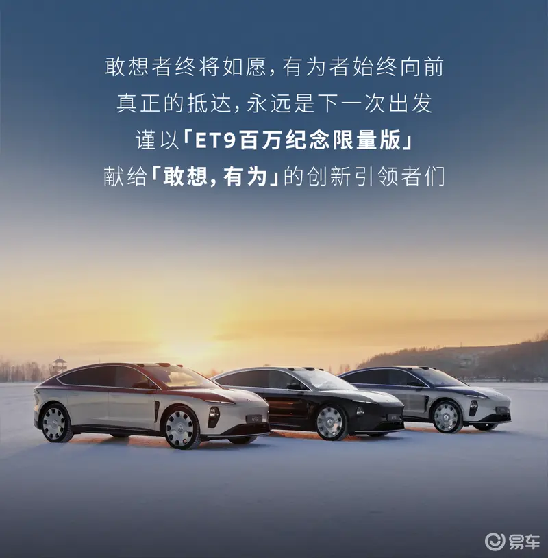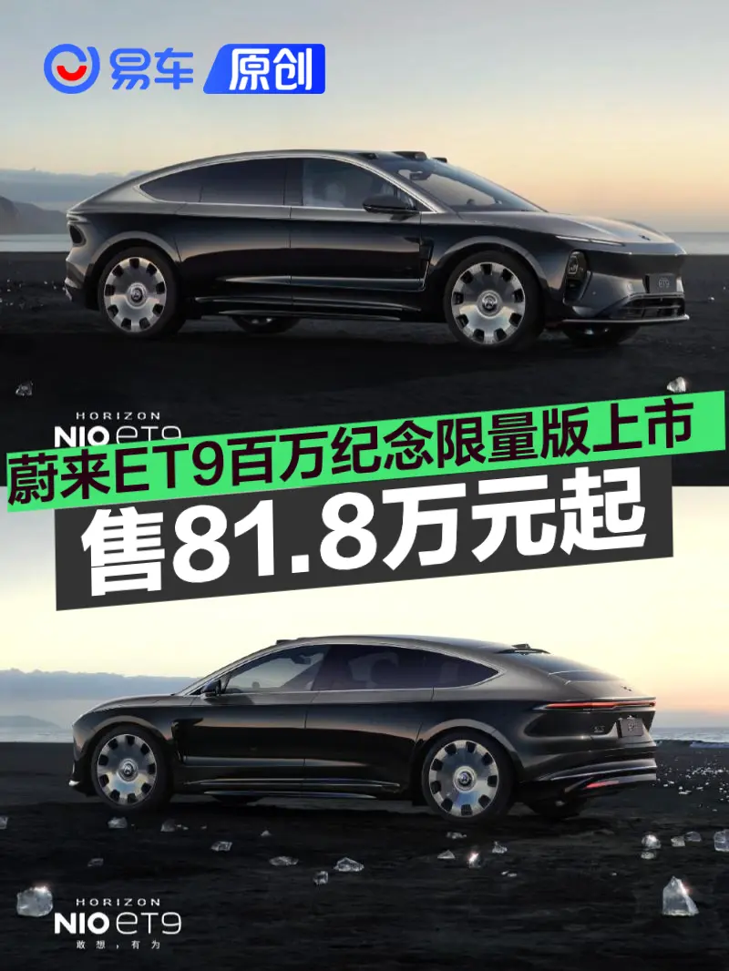 易车讯 1月7日,蔚来宣布值此蔚来第100万台量产车下线之际,正式推出ET9百万纪念限量版车型,售价81.8万元起,采用BaaS电池租用方式购买售价71万元起,全球限量9台。即刻开启大定和锁单,尊享10年免费换电等五大用车场景专属权益。