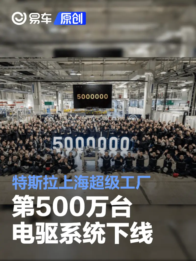 易车讯 1月8日,特斯拉官方宣布特斯拉上海超级工厂第500万台电驱系统迎来正式下线。12月30日,特斯拉宣布全球第900万辆电动车在上海超级工厂下线,迎来了新的里程碑时刻,下线车辆是一台Model Y。