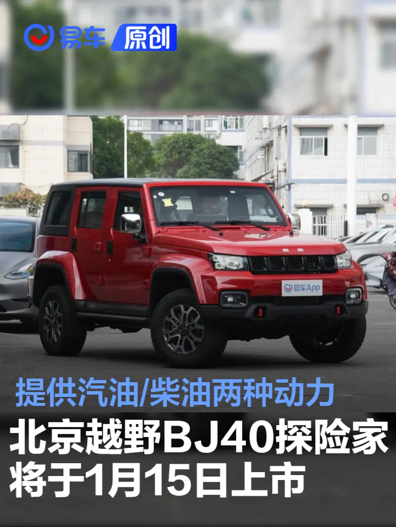 易车讯 日前,我们从官方获悉,北京越野BJ40探险家将于1月15日上市。新车在去年11月开幕的广州车展中开启盲订,99元,即可膨胀10倍,直接抵扣1000元购车款。