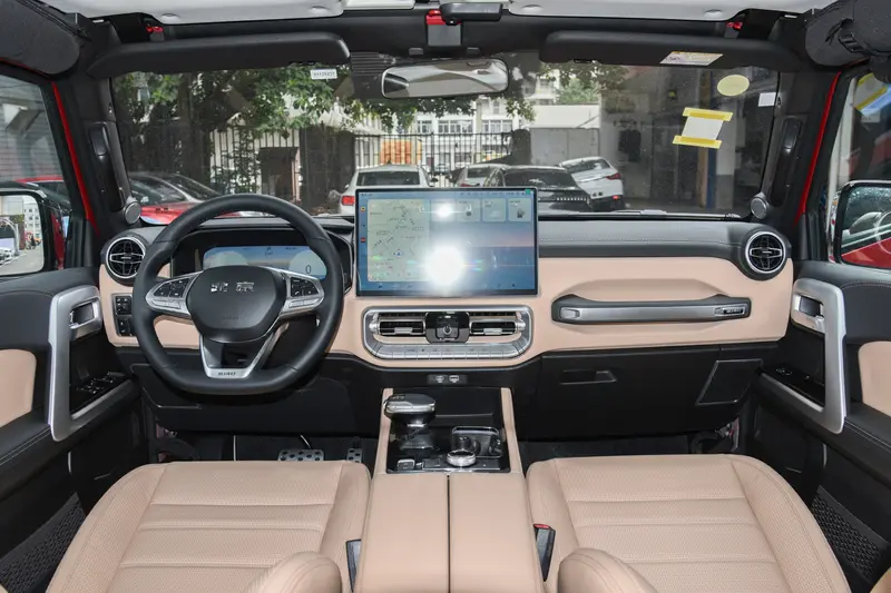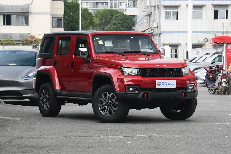 外观方面,外观方面,新车沿用了老款车型设计,并采用了经典的红色车漆。前脸经典的五孔状前格栅非常具有辨识度,整体造型方正,突出了其硬派属性,直棱直角的设计也使得车内空间更加充裕。