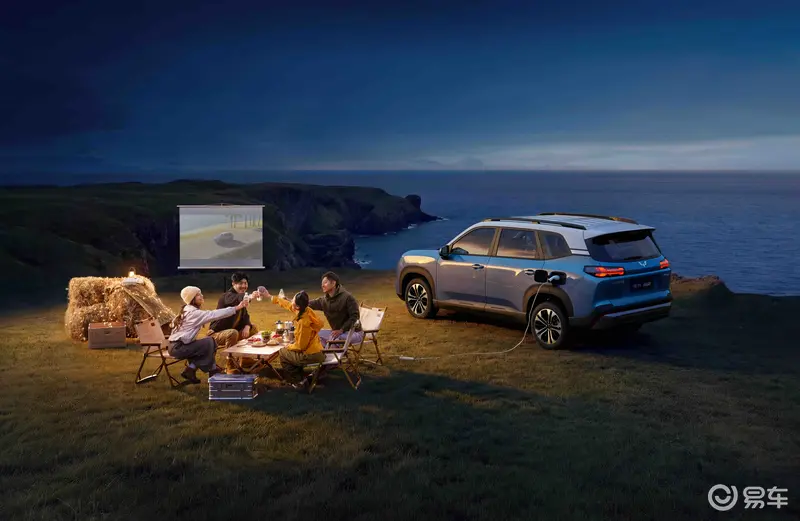 插混与纯电版均配备电池加热与智能保温功能,缓解冬季续航衰减,且支持220V外放电,可随时随地化身“移动电站”,为露营休闲、户外直播、移动摊位等场景提供便利。此外,车辆还搭载车顶行李架,进一步强化硬派风格与实用拓展能力。