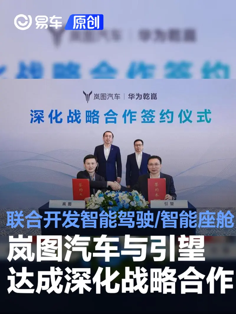 易车讯 1月12日,岚图汽车科技股份有限公司(简称“岚图汽车”)与华为控股子公司深圳引望智能技术有限公司(简称“引望”)签署深化战略合作协议,将在智能驾驶及智能座舱联合开发、To C软件联合运营等方面深化战略合作。